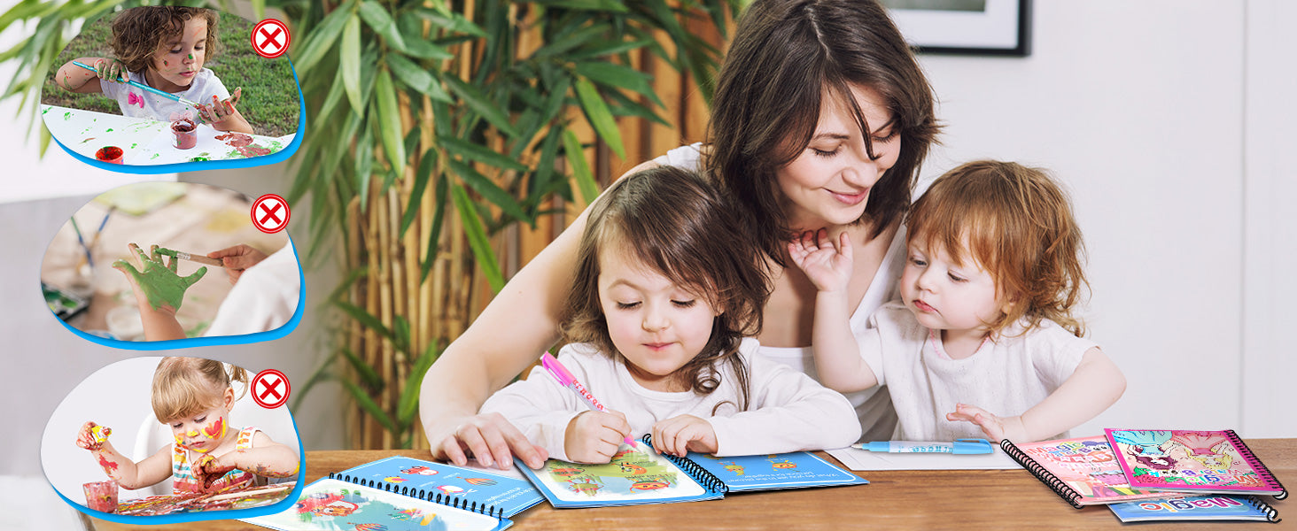 Très bien pour les petits et pas de feutre plein la table! Génial, Les marqueurs sont très jolis, meilleurs qu'un pinceau. Les livres contiennent également de jolis dessins. J'aime bien !